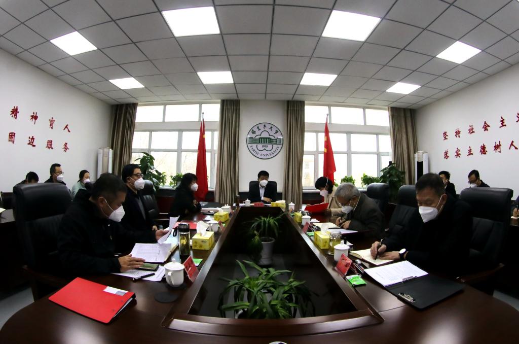 党委书记赵光辉主持并讲话。党委副书记、校长张爱萍,副校长张利莉,党委常委、副校长曲义勇、赵峰华、于军、石长青出席。相关部门主要负责同志列席。会议在行政楼308会议室召开。