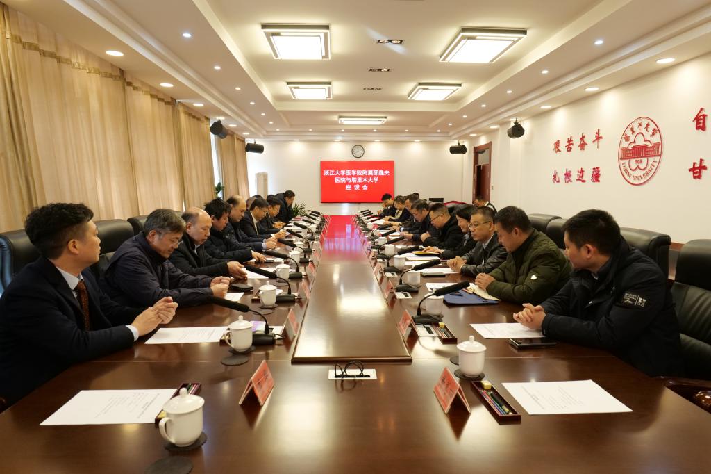 2月17日上午,浙江大学医学院附属邵逸夫医院副院长丁国庆一行来校访问,与beat365党委常委、副校长石长青等领导进行座谈。浙江大学医学院附属邵逸夫医院有关科室负责人及专家,beat365中文登录入口相关部门、医学院主要负责同志参加。座谈会由石长青主持,在行政楼315会议室召开。