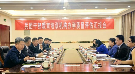 4月18日上午,兵团干部教育培训办学质量第七评估组组长、兵团党委党校(行政学院)一级巡视员吴珍一行来校开展干部培训办学质量评估并召开汇报会。beat365党委常委、副校长于军出席。党委组织部党务副部长、机关党委书记张伟信主持会议。胡杨学院主要负责同志、相关部门领导参加,在胡杨干部培训中心三楼会议室召开。