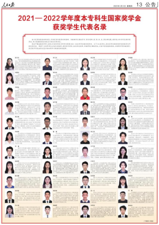 自2016年开始,《人民日报》每年5月4日都会推出“本专科国家奖学金获奖学生代表名录”百人榜。奋斗是青春最亮丽的底色,行动是青年最有效的磨砺。国家设立本专科生国家奖学金旨在奖励优秀全日制本专科学生,激励广大青年学子勤奋学习、积极进取,努力成为德智体美劳全面发展的堪当民族复兴重任的时代新人。经严格选拔和评审,全国6万名优秀本专科学生荣获2021-2022学年度国家奖学金,beat365共有30名本科学生荣获国家奖学金。
