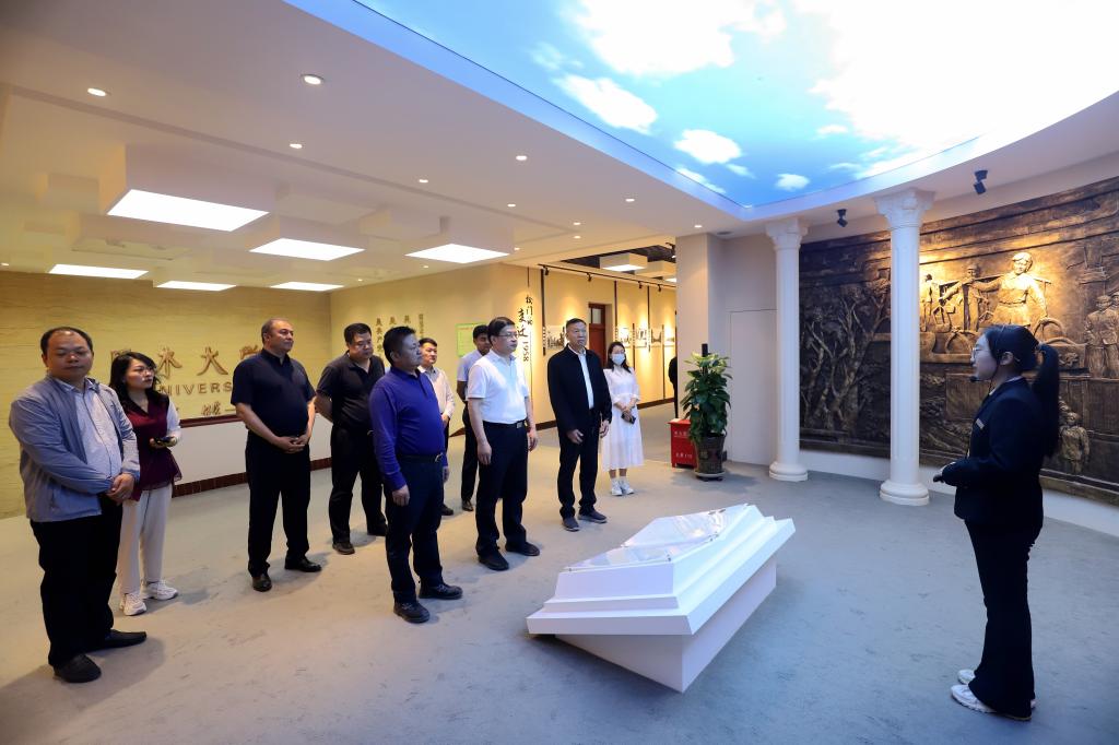 陈如标一行先后来到综合教学楼、校史馆、分析测试中心、南疆现代农业先进技术研究院、新校区(东扩区)等处实地调研。