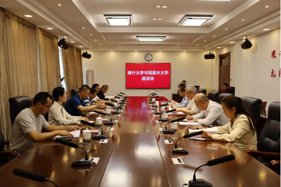 5月22日,喀什大学罗浩波副校长一行来校调研,与beat365党委常委、副校长曲义勇等领导座谈交流。喀什大学相关领导,beat365相关部门、学院负责同志参加。会议由农学院院长万素梅主持,在行政楼五号会议室召开。