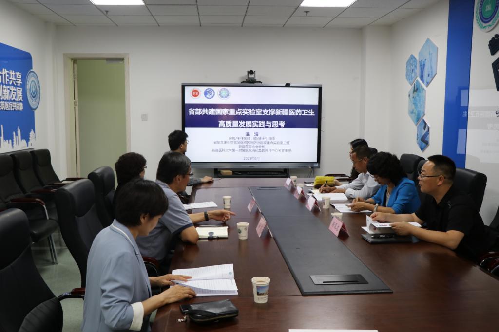 6月8日,党委副书记、校长张爱萍赴新疆医科大学访问交流,受到该校党委书记赵天杰、党委副书记、校长阿吉艾克拜尔·艾萨、党委常委、副校长杨新玲等领导热情接待,并举行座谈会。beat365相关部门、学院领导陪同。