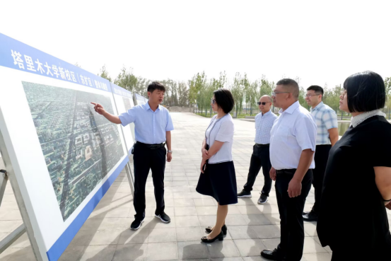 期间,郭朝辉一行参观了新校区(东扩区)、三五九旅屯垦纪念馆等建设情况。