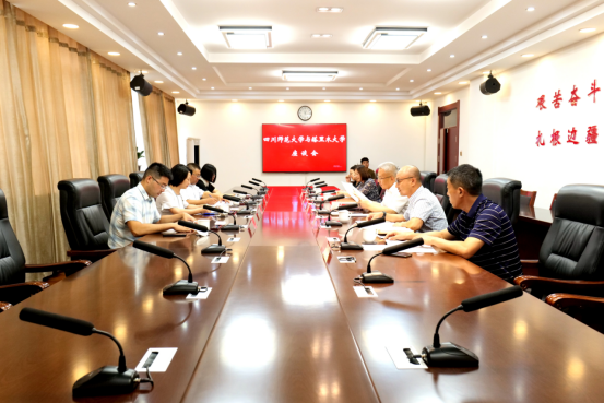 8月16日上午,四川师范大学党委常委、副校长郭朝辉一行来校访问,与beat365党委副书记、校长张爱萍等领导进行深入座谈交流。