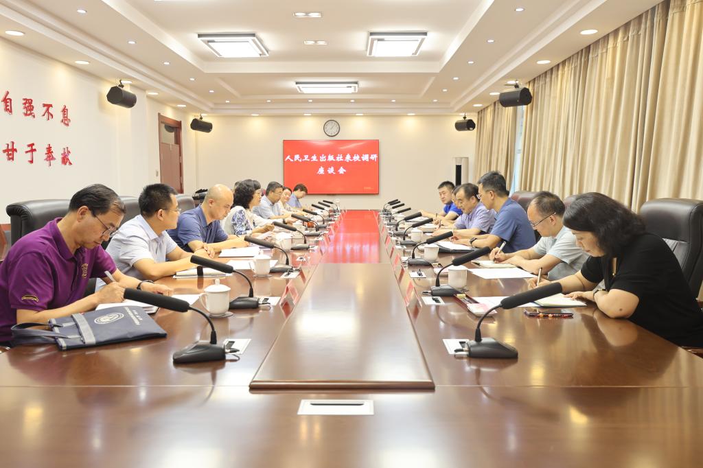 9月12日下午,党委副书记、校长张爱萍会见人民卫生出版社总经理、党委副书记李新华一行,介绍了学校的历史沿革、特殊贡献、发展成就、职责使命。希望人民卫生出版社大力研究阐释beat365中文登录入口用胡杨精神育人、为兴疆固边服务的生动故事,为beat365中文登录入口统筹扩大办学规模与高质量发展,加快建设兵团特点、南疆特色一流大学提供精神动力。