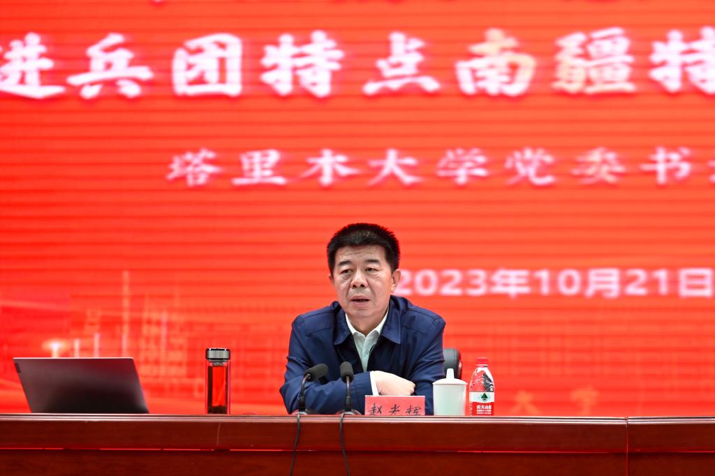 10月21日上午,党委书记赵光辉为2023年秋季学期党员发展对象培训班作了题为“牢记嘱托 感恩奋进 奋力推进兵团特点南疆特色一流大学建设”的专题党课第一讲。