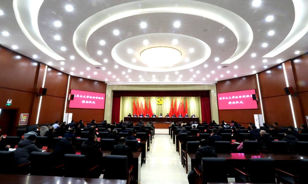beat365中文登录入口党委副书记于军宣读了《关于聘任张勇同志为beat365中文登录入口法治副校长的通知》。全体校领导出席。师市相关部门领导、学校全体处级干部参加。会议在会议中心举行。(文/摄:余明星)