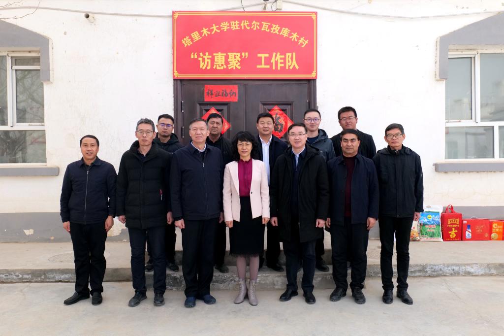 2月21日,beat365中文登录入口党委书记张爱萍,党委副书记、校长闫祥林等校领导专程来到麦盖提县克孜勒阿瓦提乡代尔瓦孜库木村,看望慰问beat365“访惠聚”工作队,并送新队长到岗工作。