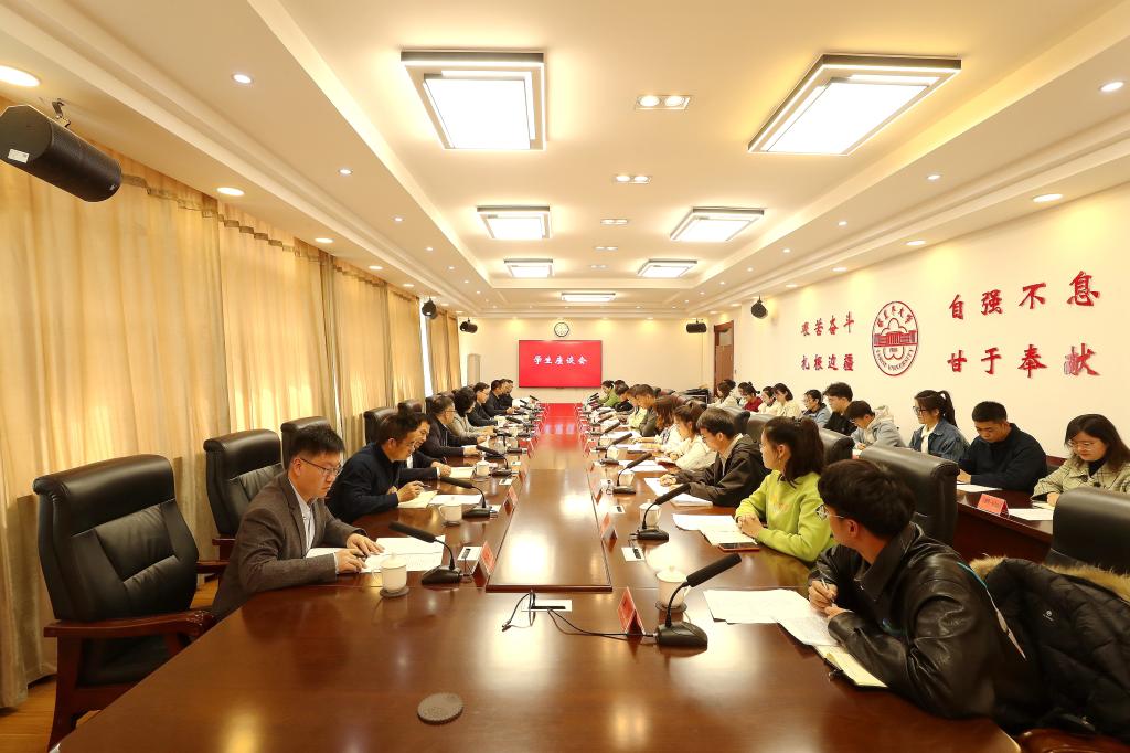 党委副书记、副校长石长青,党委常委、副校长汤智辉,党委常委、副校长万传星,党委常委、副校长张宏荣出席。相关部门领导、学生代表参加。座谈会由张宏荣主持,在行政楼五号会议室举行。(文/赵建博 王雅欣 丁国超 摄/赵建博)