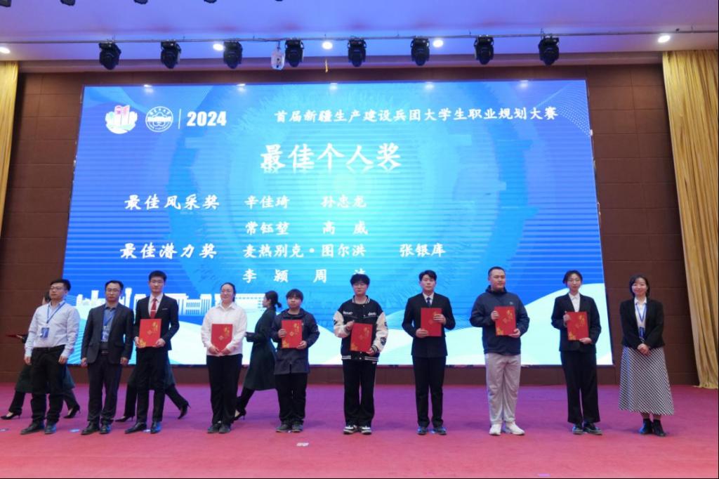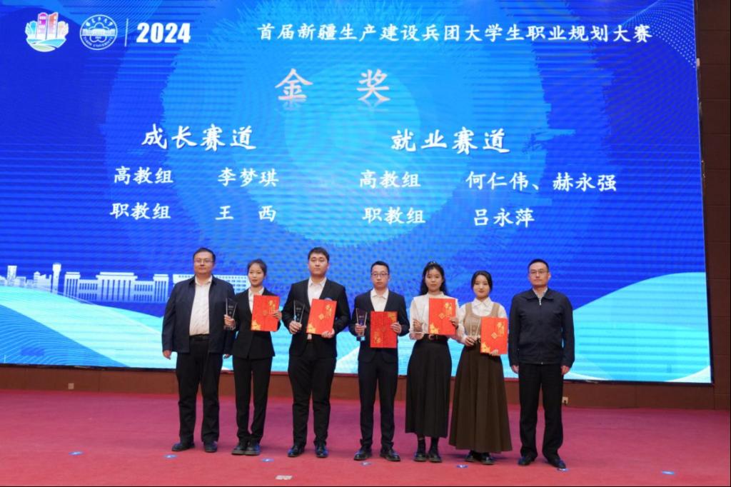 李梦琪、王西分获本届大赛成长赛道高教组、职教组金奖;何仁伟、赫永强、吕永平分获本届大赛就业赛道高教组、职教组金奖;王龙淼、刘巧芝分获本届大赛教学赛道高教组、高职组金奖。大赛还评出银奖9名、铜奖17名、最佳个人奖8名。beat365中文登录入口、石河子大学、石河子工程职业技术学院被授予优秀组织单位。与会领导为大赛获奖团队和个人颁发了奖状、奖杯、证书。