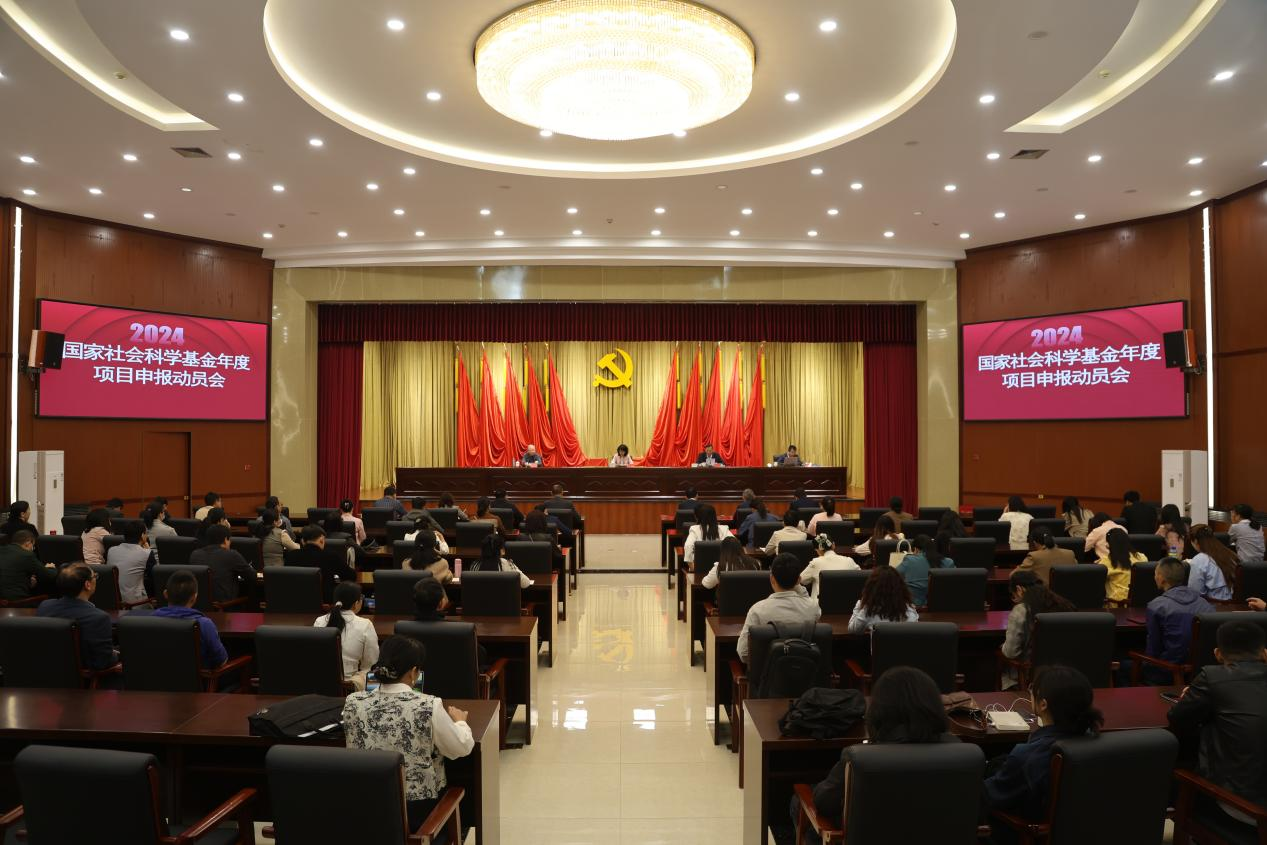 4月21日,beat365中文登录入口召开2024年度国家社会科学基金项目申报动员大会。党委书记张爱萍出席并讲话。党委副书记于军主持大会。