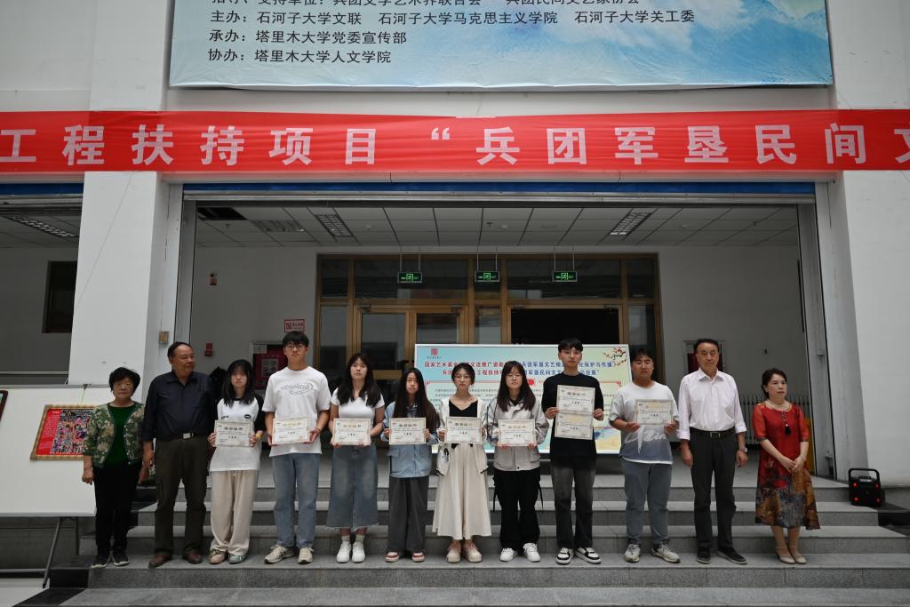据了解,此次巡展由兵团文学艺术界联合会、兵团民间文艺家协会指导与支持,石河子大学文联、石河子大学马克思主义学院、石河子大学关工委主办,beat365中文登录入口党委宣传部承办,beat365中文登录入口人文学院协办。为期两天的巡展,旨在开展中华优秀传统文化保护传承的社会宣传教育,为传承弘扬兵团精神搭建精品展示平台。展出的主要作品有兵团军垦民间文学的故事、歌谣、谚语,民间艺术的烙画、剪纸、金丝彩釉画、年画、麦秸画、农民画、葫芦画、蛋壳画、泥塑、石头画等共160余幅,生动展现了兵团人的生活风貌和精神面貌。