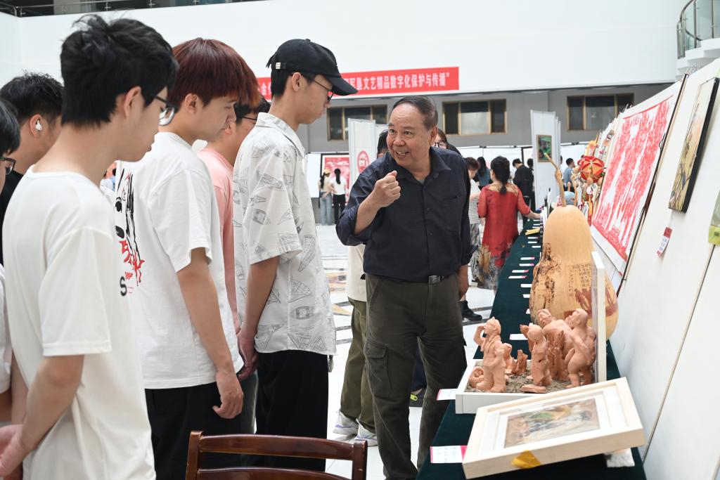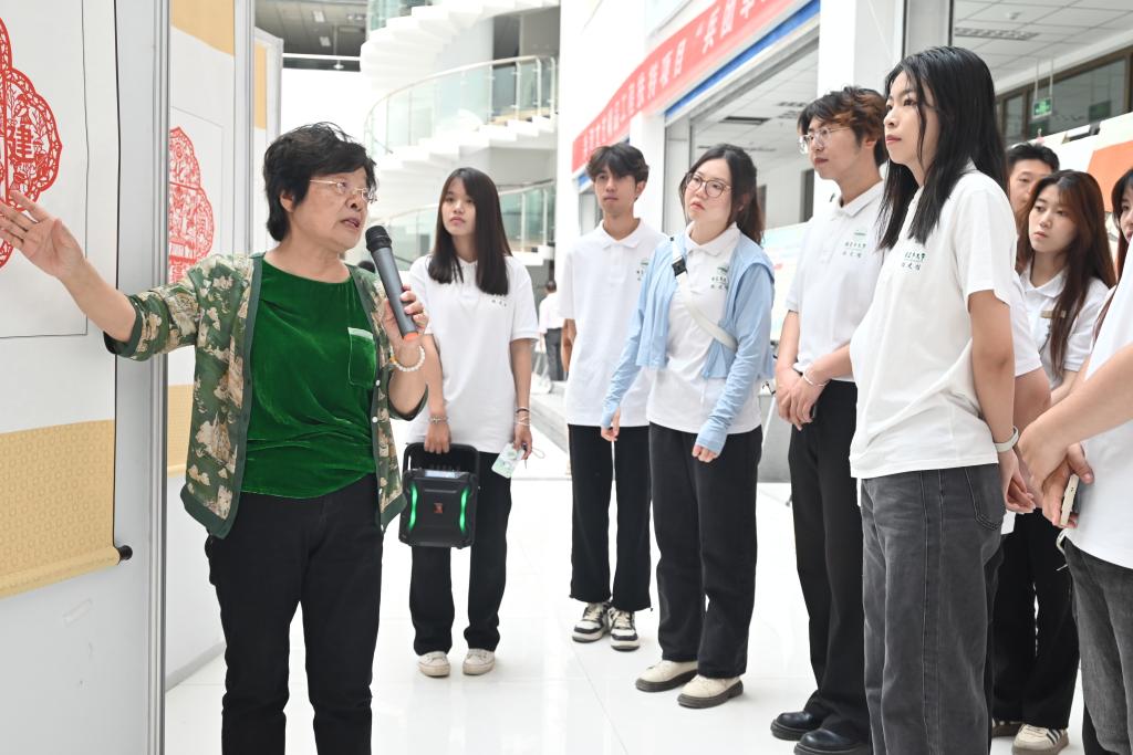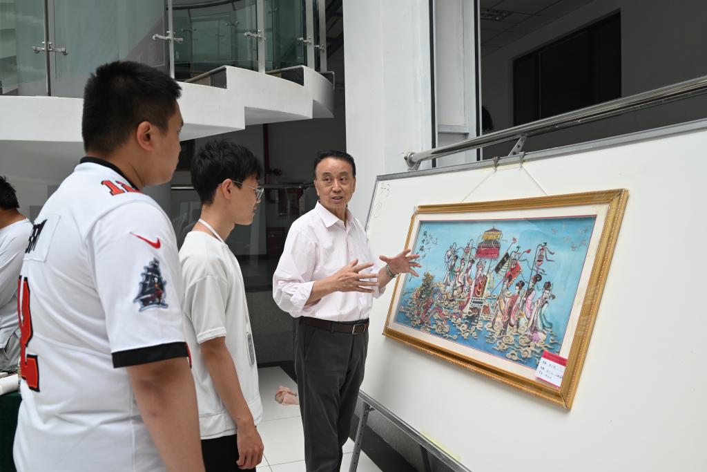 展出现场,师生们驻足观看,不时互相交流。项目组专家为前来参观的学生详细讲解了每幅作品背后的故事和精神内涵。