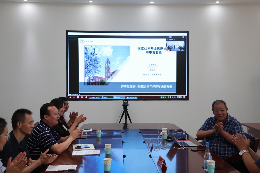 29日上午,田卫民为经济与管理学院、马克思主义学院(法学院)、人文学院、历史与哲学学院师生,作了“新时代如何进行课程建设”的主题报告,从国家社科基金选题来源、问题意识、论证申报技巧等方面进行了辅导,为进一步推进旅游管理专业和课程建设提供了方向和思路。