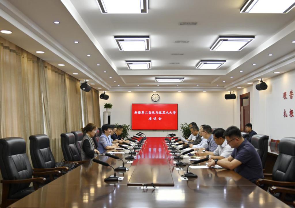 闫祥林介绍了学校发展成就,希望两校进一步深化交流合作,共建平台,共享资源,共育人才,携手推动高等教育高质量发展,更好地服务中国式现代化新疆实践、兵团实践。