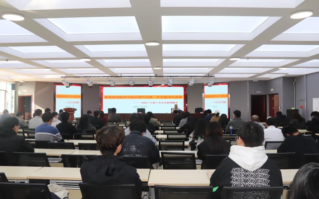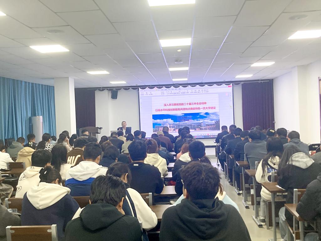 党委常委、副校长汤智辉为机械电气化工程学院、纺织服装学院宣讲党的二十届三中全会精神。机械电气化工程学院党委书记王旭峰主持。