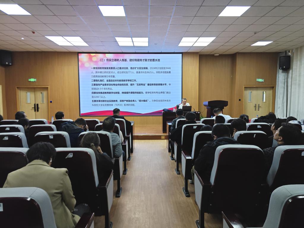 党委常委、副校长张宏荣为园艺与林学学院宣讲党的二十届三中全会精神。园艺与林学学院党委书记熊仁次主持。