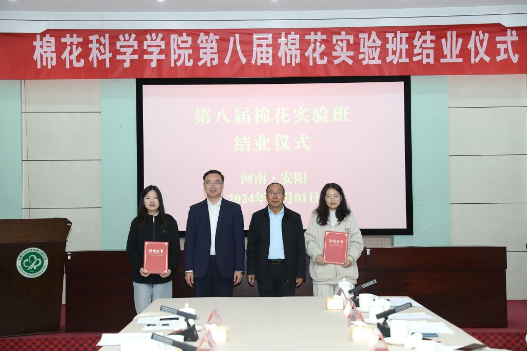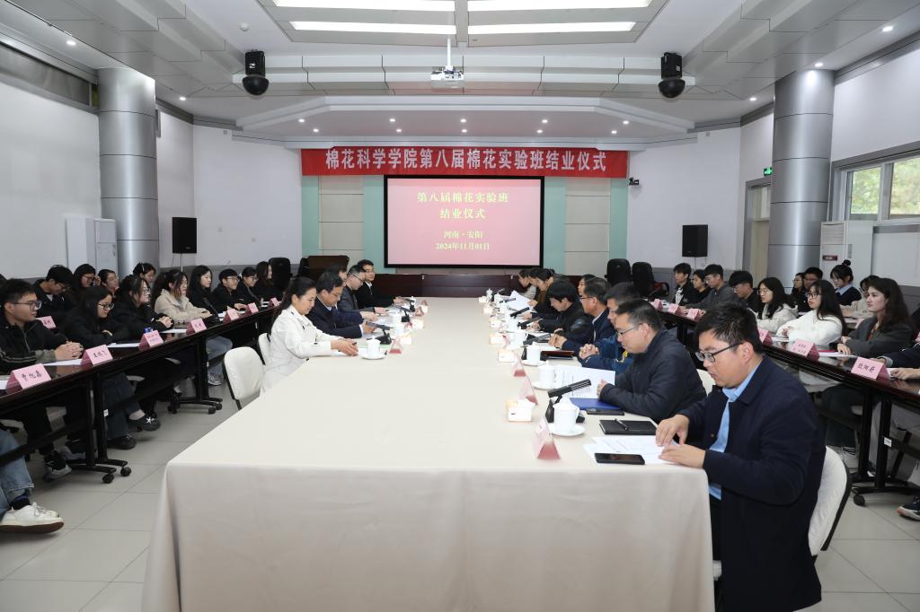 中国农业科学院棉花研究所相关部门领导,beat365中文登录入口相关部门、学院领导,棉花实验班导师代表、全体学生参加。结业仪式在中国农业科学院棉花研究所产业楼多功能厅举行。