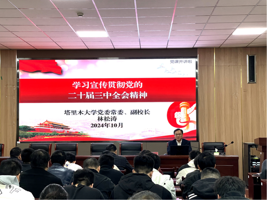 10月30日下午,学校党委宣讲团成员、党委常委、副校长林松涛深入信息工程学院宣讲党的二十届三中全会精神。信息院党委书记朱夺宝主持。