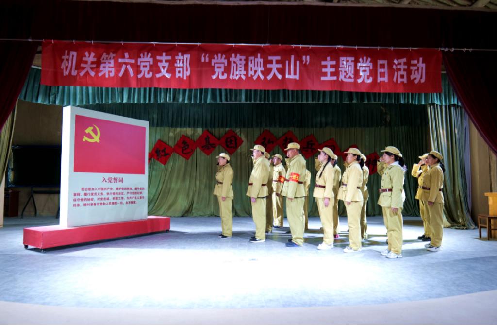 “我志愿加入中国共产党……”在基地老一营大礼堂,在党支部书记带领下,支部全体党员干部重温入党誓词,歌唱革命歌曲,学习《毛主席语录(节选)》,进一步锤炼党性修养,坚定理想信念。