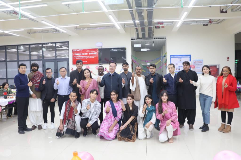 12月20日,学校开展“情暖塔大 共庆冬至”包饺子活动。党委副书记、校长闫祥林,党委常委、副校长林松涛、汤智辉,相关部门领导、师生代表,同2024级国际学生,一起在新校区(东扩区)四期食堂包饺子。