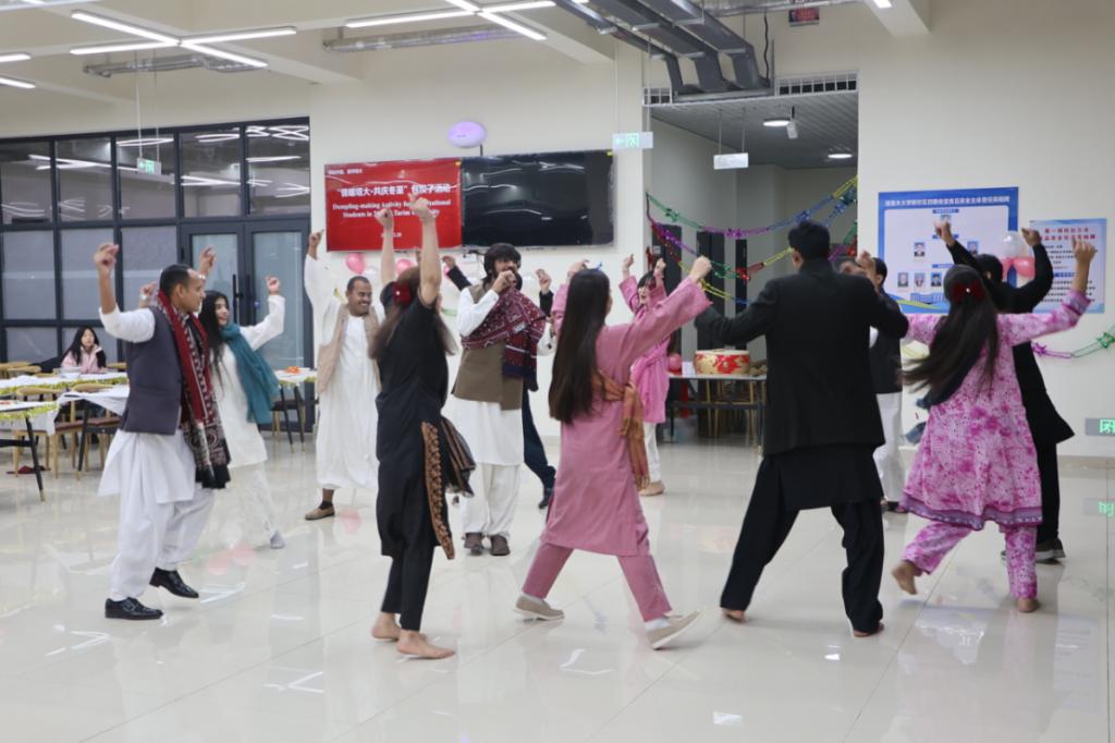 活动现场,师生们和食堂工作人员齐上阵,手把手教国际学生包饺子。大家分工协作,动作娴熟,揉面、擀皮、包馅……活动现场气氛热烈,充满了欢声笑语。