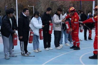第一师阿拉尔市胡杨救援队工作人员为大家讲解消防设施使用方法,并指导学生实践操作,帮助学生有效掌握消防应急技能。