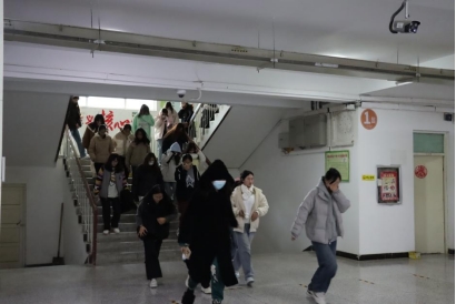 演练现场,随着模拟火灾警报声响起,学生们按照疏散路线,迅速有序撤离到指定集合地点。整个演练过程严肃认真、紧张有序。