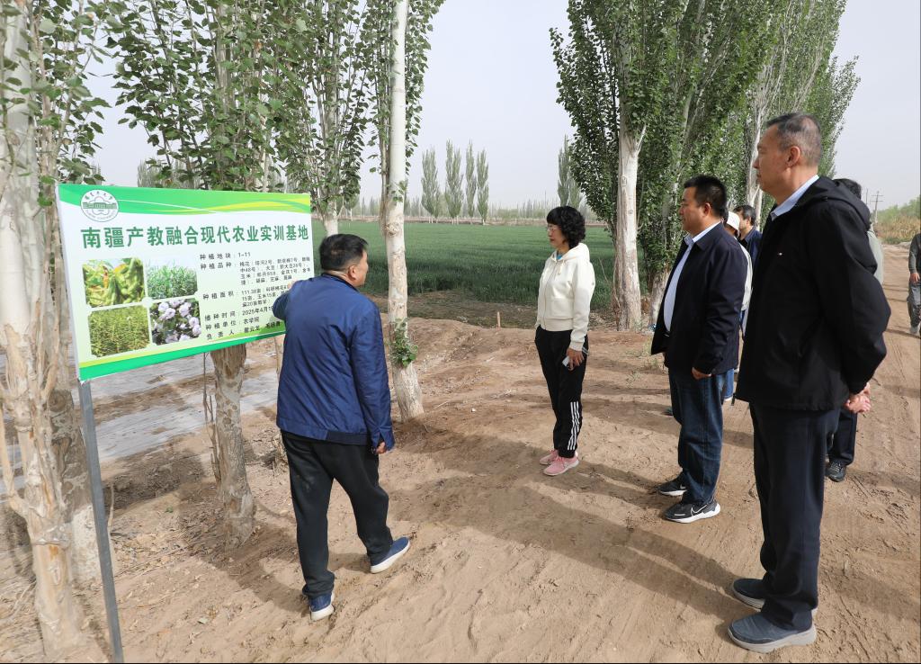 4月26日,党委书记张爱萍,党委副书记于军,党委常委、副校长林松涛,党委常委、副校长汤智辉,党委常委、纪委书记郑麟,党委常委、副校长谢建新,党委常委、组织部部长张伟信一行,赴南疆产教融合现代农业实训基地调研春播工作。