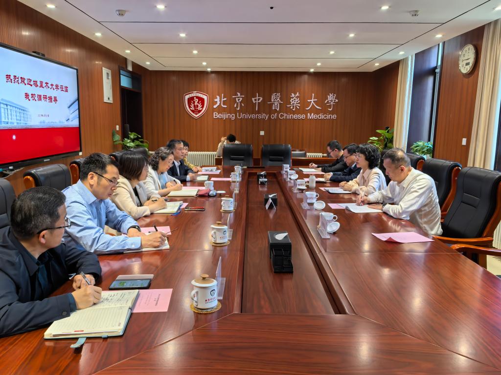 4月28日,党委书记张爱萍,党委副书记于军,党委常委、副校长林松涛等领导赴北京中医药大学交流访问,受到北京中医药大学党委书记王瑶琪,党委副书记张继旺等领导热情接待并进行座谈交流。