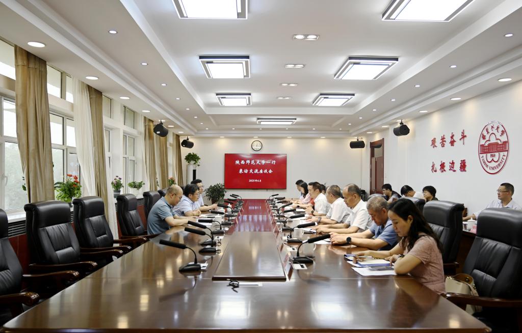 6月12日,陕西师范大学党委常委、副校长李秉忠一行来校交流,与beat365党委书记张爱萍,党委常委、副校长张宏荣等领导,在行政楼四号洽谈室深入交流。