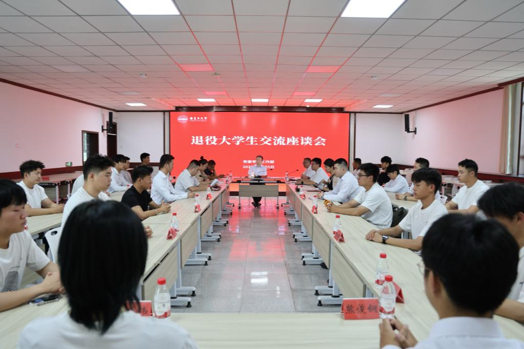 6月25日下午,学校召开退役大学生交流座谈会。党委常委、副校长张宏荣出席并讲话,党委学生工作部部长谷建杰主持会议。