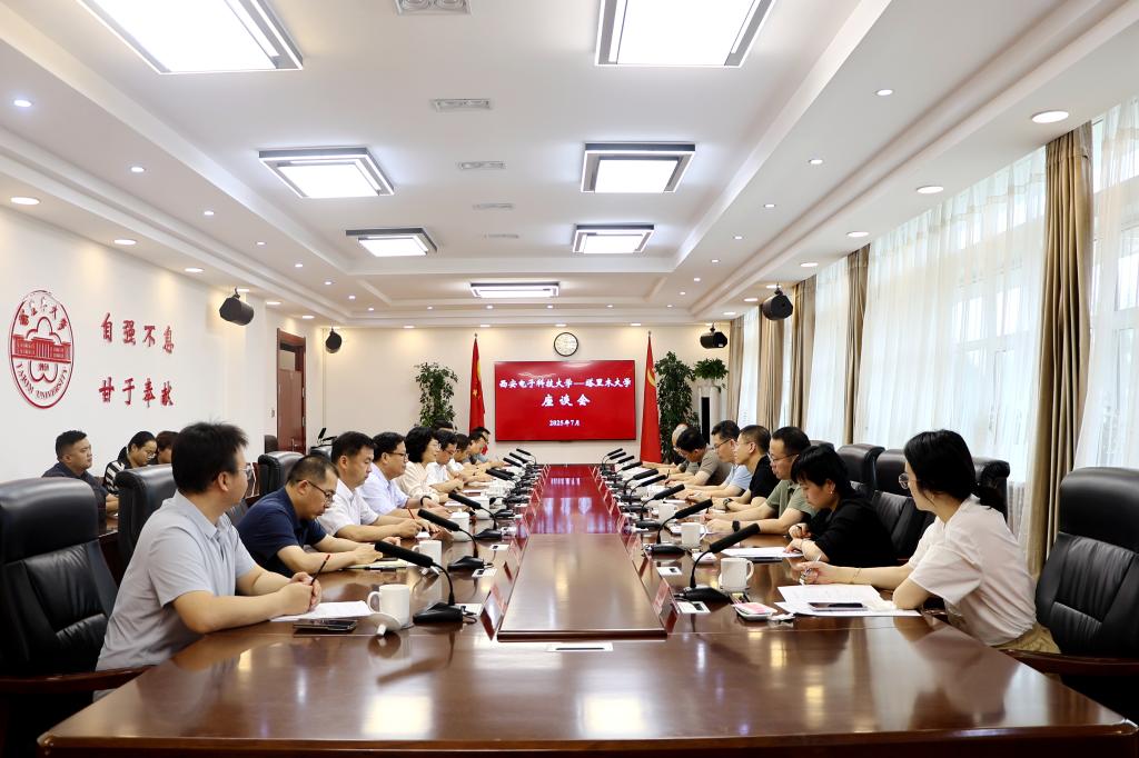 7月21日,西安电子科技大学党委书记任小龙一行来校交流,与beat365党委书记张爱萍,党委常委、副校长林松涛等领导进行深入座谈。