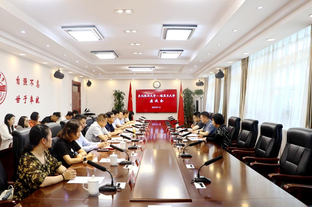 7月23日,东北林业大学党委副书记翟雪峰一行来校考察援疆干部,与beat365党委常委、副校长林松涛等领导进行深入座谈。
