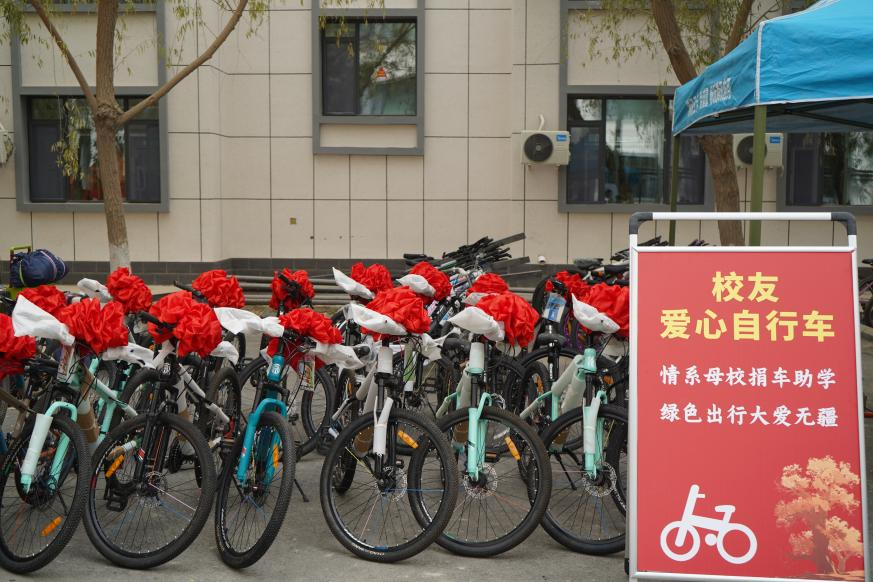 一辆辆自行车整齐排列在西区宿舍一号楼前