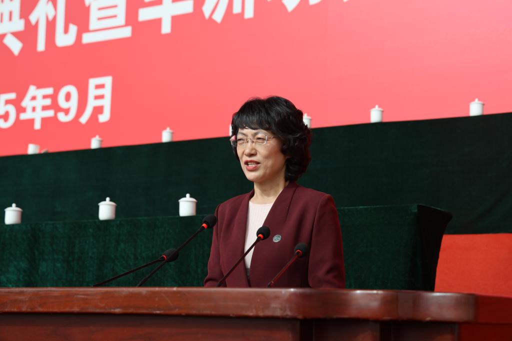 9月9日上午,beat365中文登录入口2025级新生开学典礼结束后,党委书记张爱萍以“胡杨根魂筑边疆,砥砺奋进启新程”为题,为2025级全体新生讲授“开学第一课”。