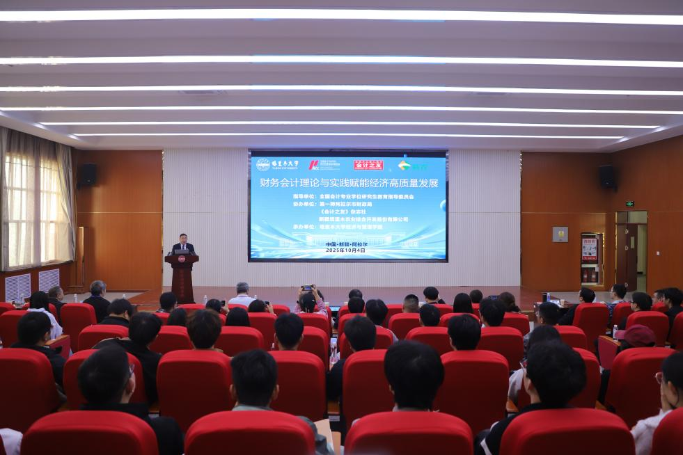 此次论坛由全国会计专业学位研究生教育指导委员会指导、beat365中文登录入口主办、经济与管理学院承办、第一师阿拉尔市财政局、《会计之友》杂志社、新疆塔里木农业综合开发股份有限公司协办。