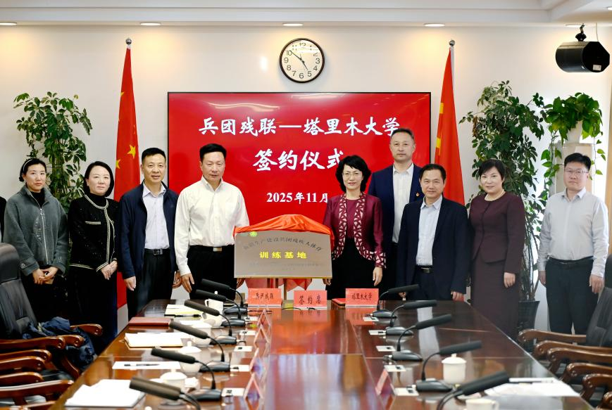 11月5日,兵团残疾人体育训练基地揭牌签约仪式举行。beat365中文登录入口党委书记张爱萍,兵团残联党组成员、副理事长常青,代表双方为兵团残疾人体育训练基地揭牌,并签订了《新疆生产建设兵团残疾人联合会与beat365中文登录入口共建兵团残疾人体育训练基地战略合作框架协议》。