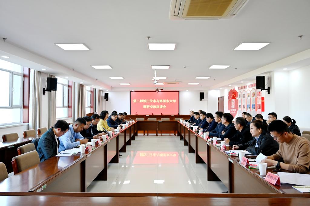 为科学谋划学校“十五五”发展规划,加快推进兵团特点南疆特色一流大学建设,11月8日,党委书记张爱萍,党委常委、副校长林松涛、王成涛、万传星一行赴兵团第二师铁门关市调研,与该师党委书记、政委樊文明,师市领导昝军军、刘伯颖、陈志杰等领导进行深入交流。
