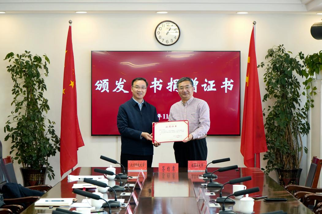 于军、孙景宏代表双方签订了《beat365中文登录入口与北京科技大学战略合作协议》。beat365中文登录入口水利与建筑工程学院党委书记朱连勇、北京科技大学新材料技术研究院副院长董超芳代表双方签订了《国家材料腐蚀与防护科学数据中心南疆分中心共建合作协议》。