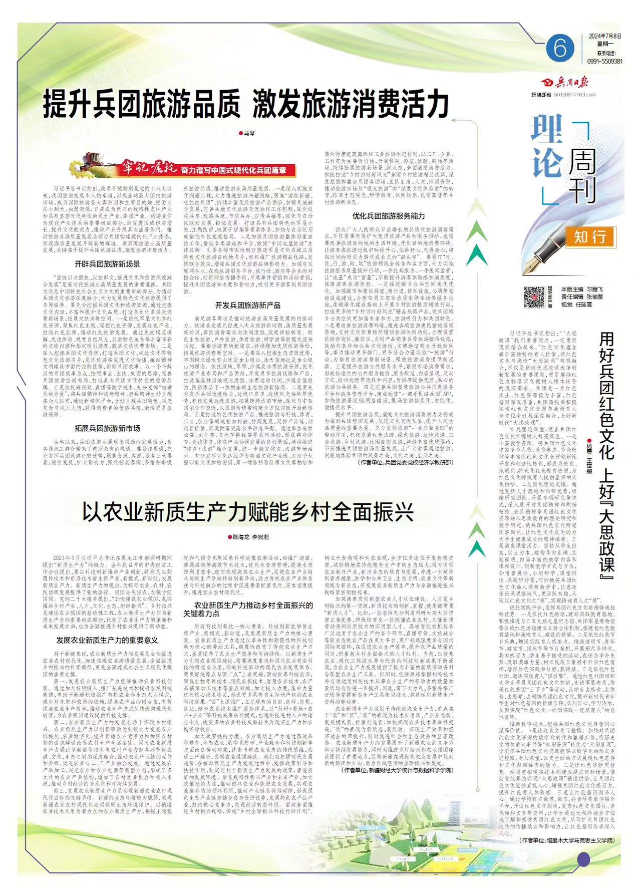 习近平总书记指出:“‘大思政课’我们要善用之,一定要跟现实结合起来。”红色文化蕴含着丰富独特的育人价值,将红色文化与高校“大思政课”有机融合,不仅是新时代思政课改革创新发展的重要课题,更是赓续红色血脉落实立德树人根本任务的现实需求。兵团是一片红色沃土,红色资源极为丰富,红色基因深沉厚重,兵团高校要积极探索红色文化资源与高校育人全方位全过程深度融合,上好新时代“大思政课”。
