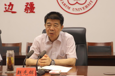 赵光辉欢迎王成一行的到来,感谢自治区科技厅长期以来对塔大发展的支持和帮助,介绍了塔大不平凡的历史、贡献、使命。希望自治区科技厅一如既往地帮助塔大建设发展、尤其是科技事业进步发展,不断提升学校的办学核心竞争力和社会贡献力,在推动南疆创新驱动发展中发挥更大作用。